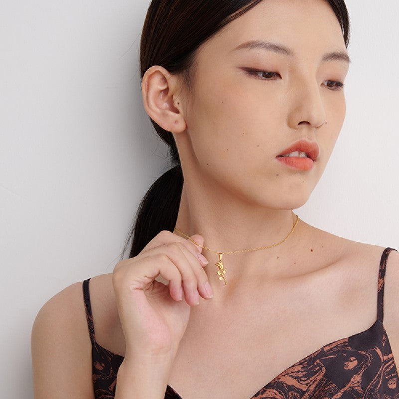 Classic French Retro Three-dimensional Rose Stainless Steel Pendant Necklace